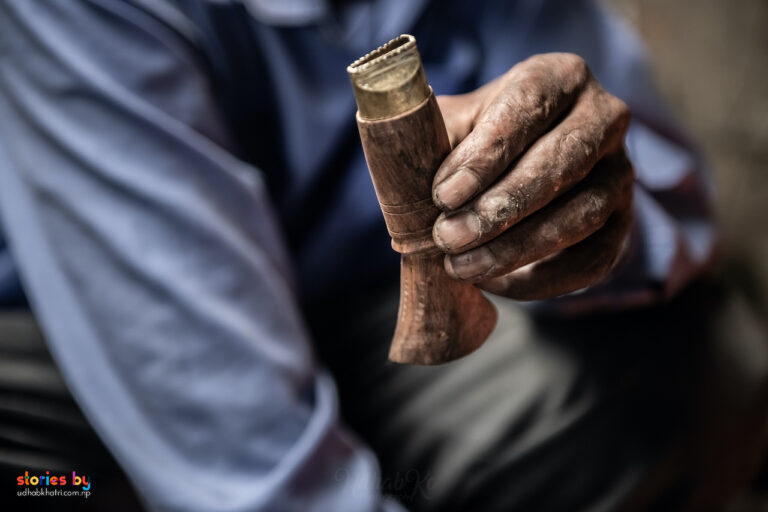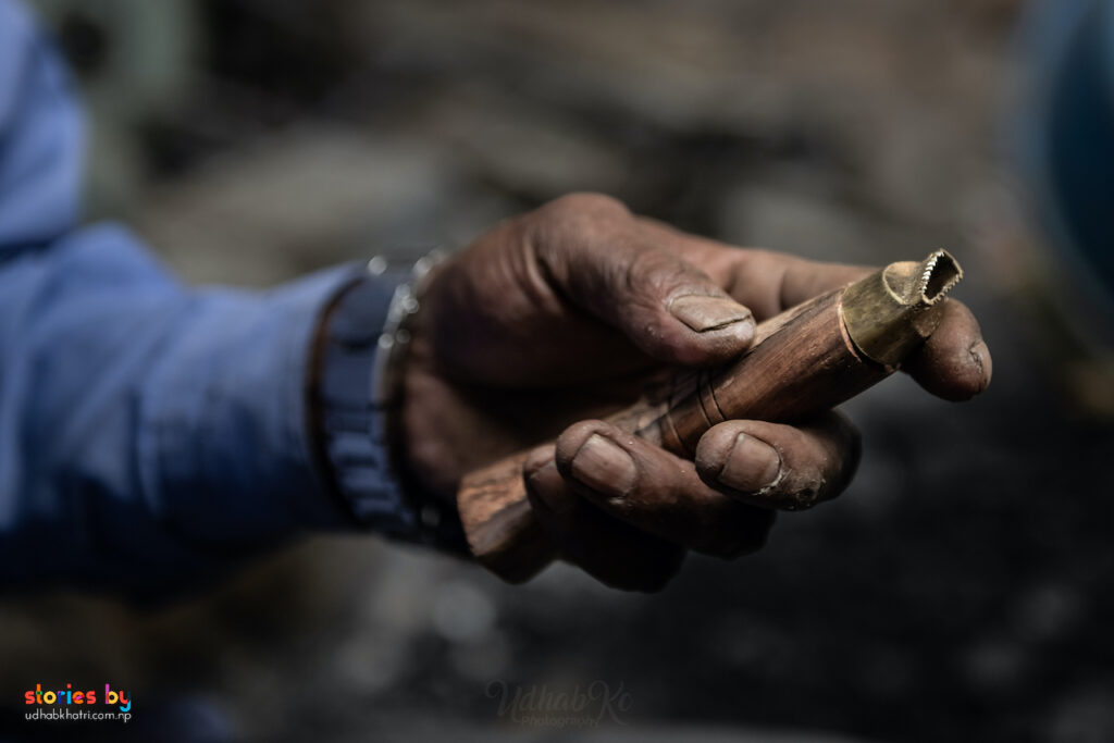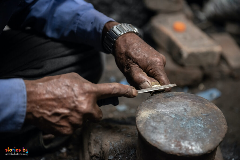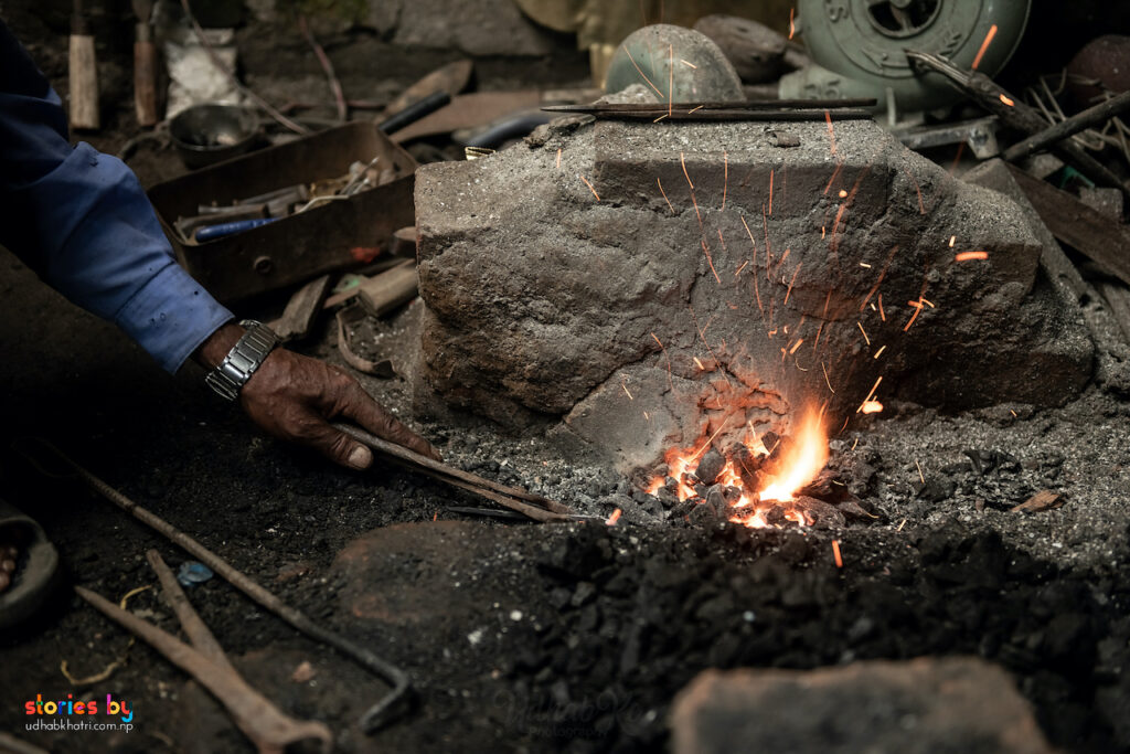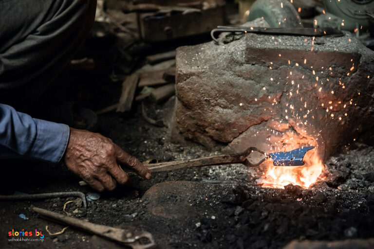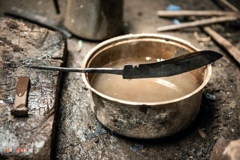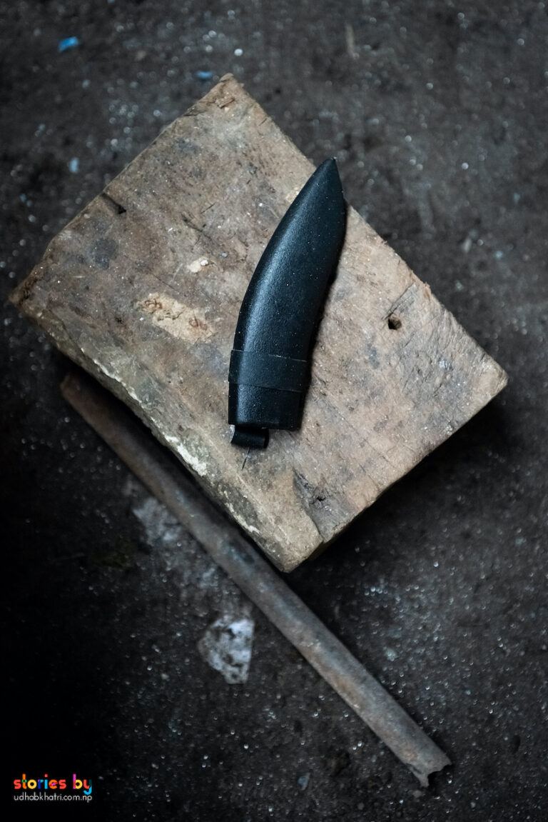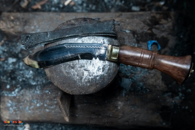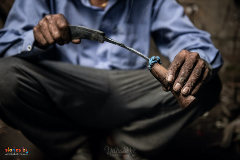 Indra Sunar is making Khukuri in traditional way for more than 40 years, over an open flame in the backyard of his Kathmandu home. The meticulous, centuries-old process of making one of these blades was taught to Sunar by his uncle when he was a teenager.